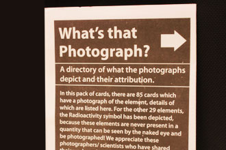 The second booklet is the 'What's that Photograph?' which describes the photograph present on each of the cards. (89 elements out of the 114) This booklet complements the reading of the cards and also credits the open source photographs incorporated in the cards.